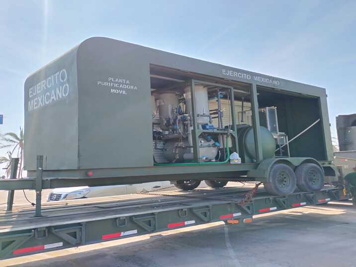DESCRIPTION: Acquisition of 42 mobile water purification units to be used in the Plan DN-III-E for national contingencies. These units have been in operation since 2013 and have been deployed in various national scenarios due to their ease of transport and operation. Our team is responsible for the manufacturing, delivery, and training of the national army’s operational staff, as well as providing ongoing maintenance, filter materials, parts, and components.